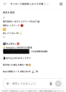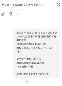 中でも僕が取り組んで成果に繋がった方法がサッカーで成約取っちゃうぞ君でポスト文を作って投稿するやり方です。