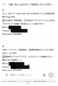 こちらも上記と同じ流れにはなりますが公式サイトのポストをコピーして貼り付けてからクリックすると10秒もあればポスト文が3〜5個出来ちゃいます。